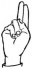 На ћирилици написано МИЛИЋ ЈЕВРЕМОВИЋ састоји се из 15 слова [?]. Исписано ћириличном једноручном азбуком за глувонеме: